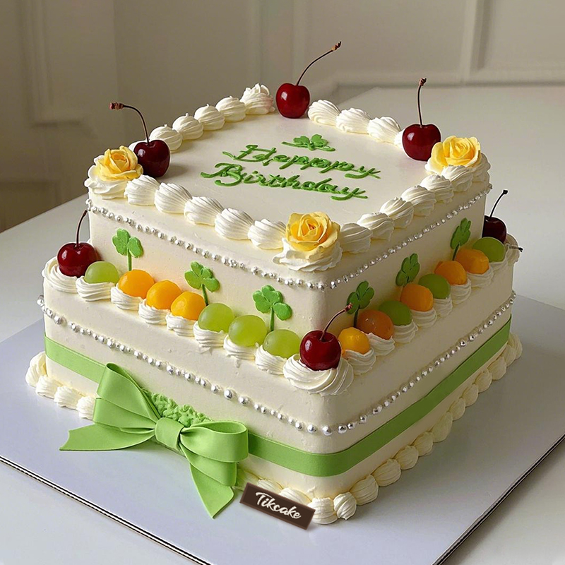 内层蛋糕胚 奶油(含水果果肉)叠加,表层奶油、翻糖皮、水果等装饰(文案可定制,请下单时留言)