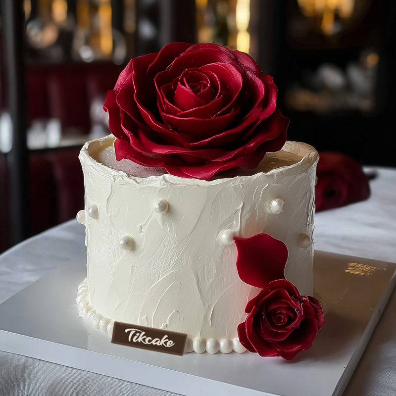 原创红玫瑰主题翻糖鲜奶蛋糕(三)