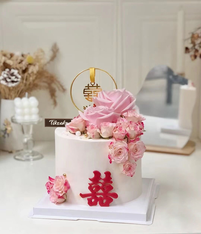 内层蛋糕胚 奶油叠加(含水果果肉),表层粉色系鲜花等装饰(注:摆件受当地材料影响,若无图上款式,将用类似的代替,介意者慎拍。)