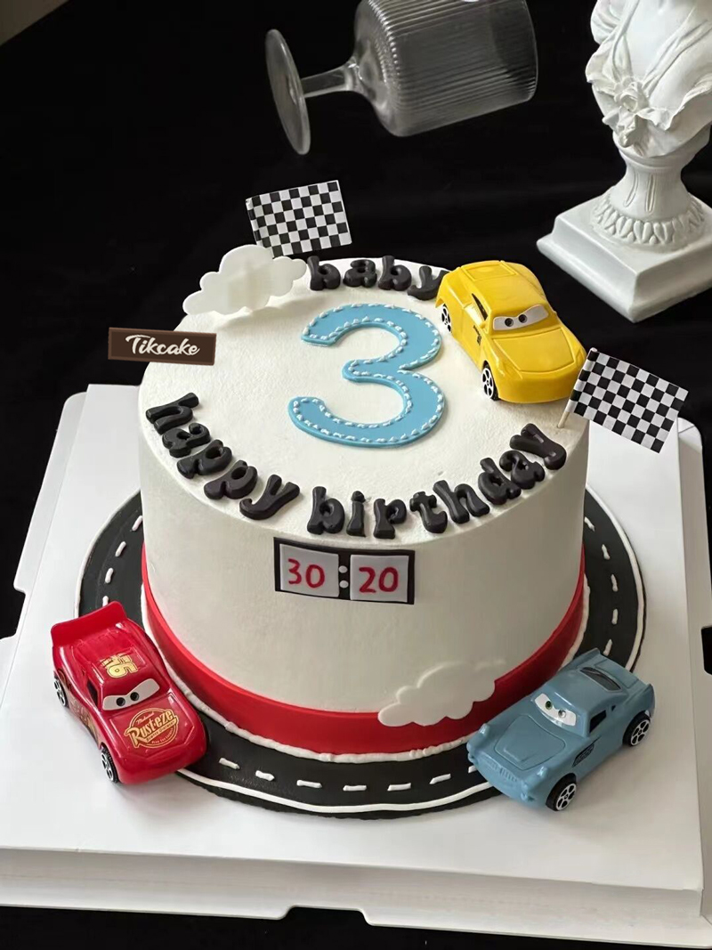 小汽车赛道主题儿童翻糖鲜奶蛋糕-体育竞彩推荐平台app
