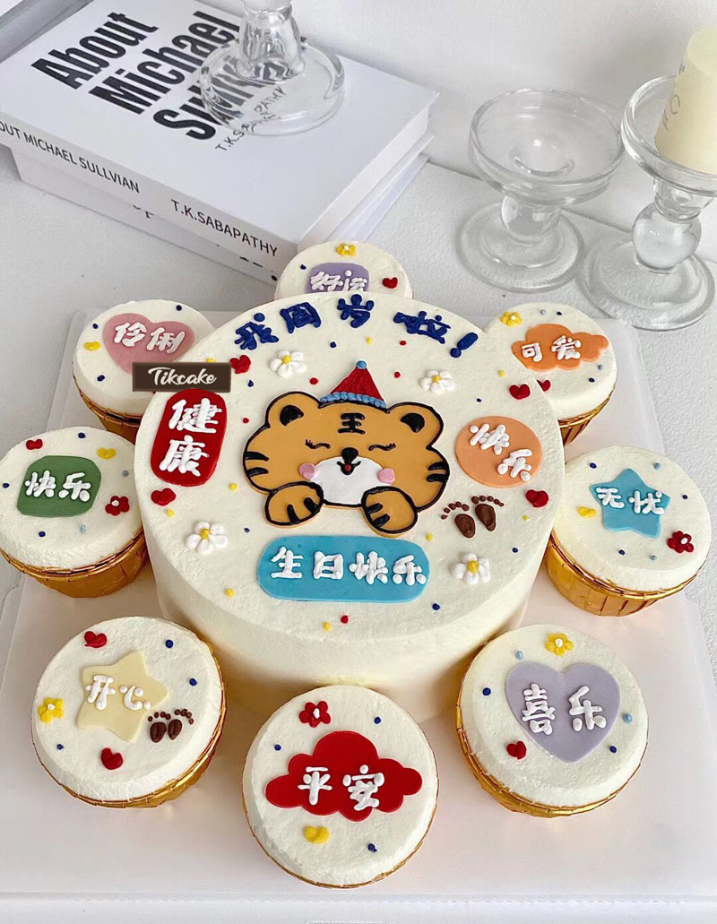 虎宝宝周岁主题手绘鲜奶蛋糕(含8个纸杯蛋糕)-体育竞彩推荐平台app