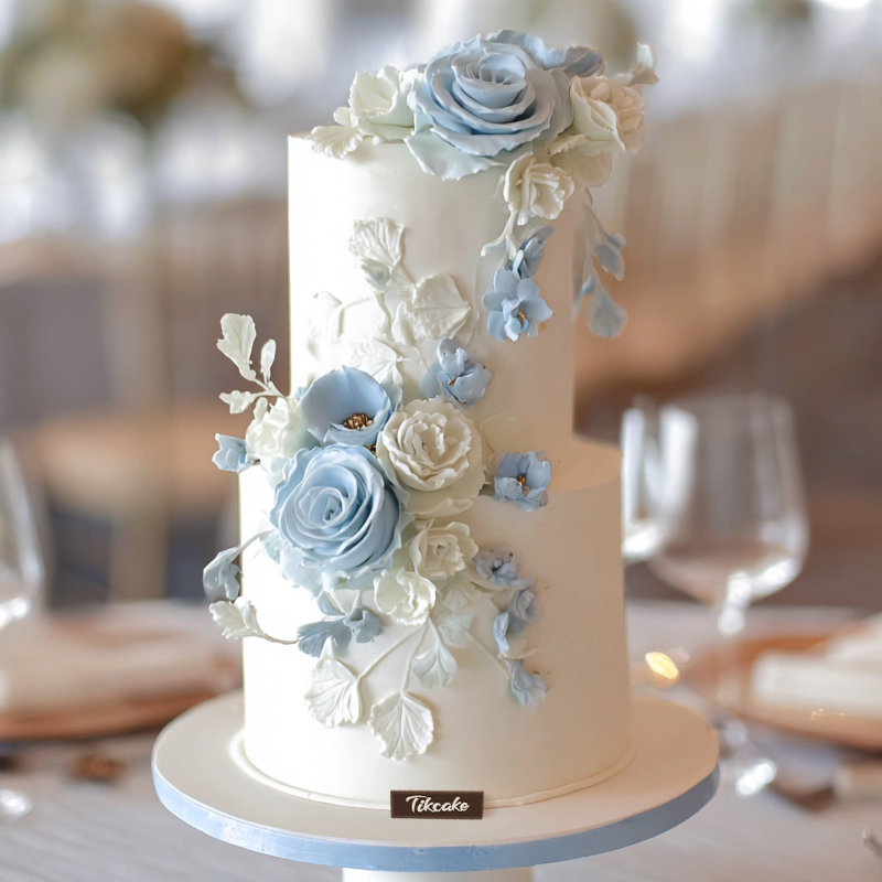原创婚庆主题双层翻糖鲜奶蛋糕