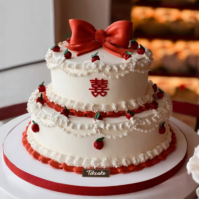 原创双层婚庆主题翻糖鲜奶蛋糕